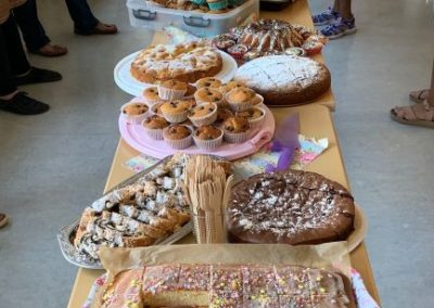 Viele fleißige helfende Hände bauten den Stand Hand in Hand gemeinsam auf, dekorierten ihn schön, sowie ordneten sie die zahlreichen Kuchen- und Snackspenden an und halfen beim Verkaufen der Köstlichkeiten, welche von den Eltern selbst hergestellt wurden.