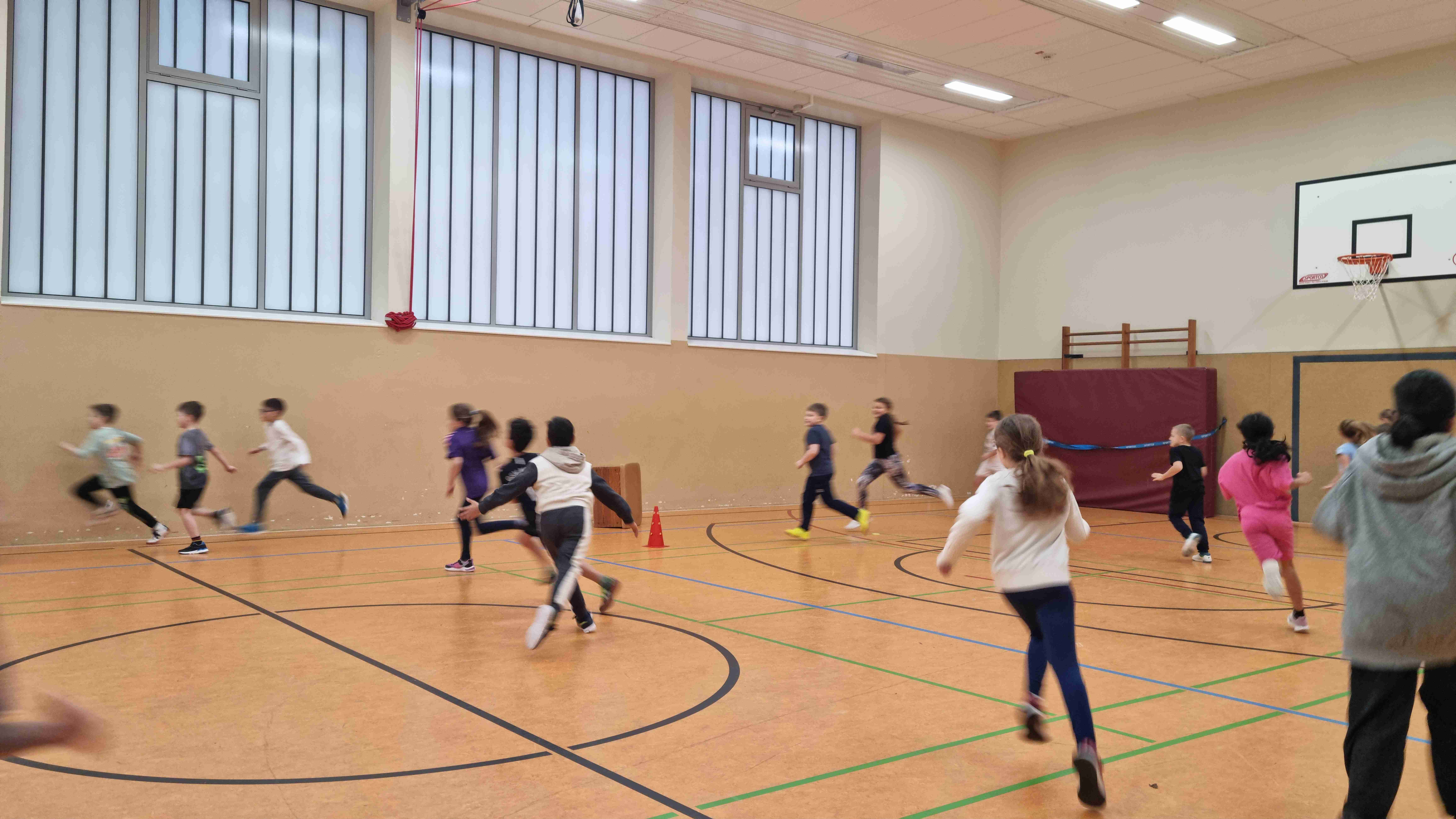 Das Highlight des Tages war der Sprint aller Klassen, bei dem die Kinder mit sehr viel Ehrgeiz und Eifer zur Ziellinie rannten.