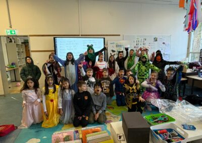 Der Tag begann mit einer herzlichen Begrüßung durch das Personal der Bibliothek, welche die Kinder in die Geheimnisse der Bibliothek einweihten. Der Höhepunkt des Tages war natürlich der Vorlesetag. Eingebettet in bequemen Sitzpositionen und umgeben von abenteuerlichen Geschichten, lauschten die Kinder gespannt den fesselnden Erzählungen.